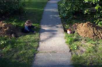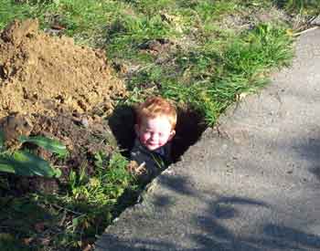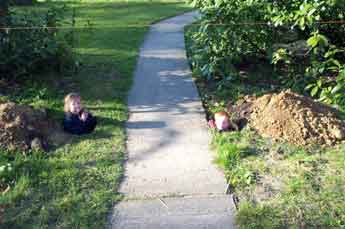 The pictures below are of the little helpers, seeing if the new gatepost holes are deep enough or trying to find a shortcut and escape route to Australia for Dad. I am sure that May will be less strenuous.